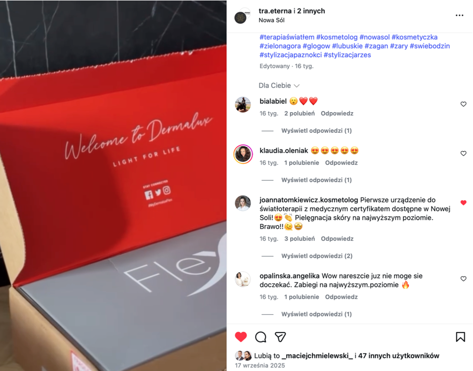 Śledź nas na Instagramie i zobacz, jak wybrane urządzenia sprawdzają się w codziennej pracy gabinetów. Inspiracje, realne efekty i zadowoleni klienci.